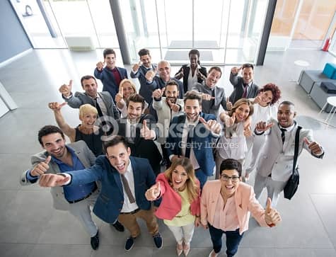 Portrait of thumb up smiling business people